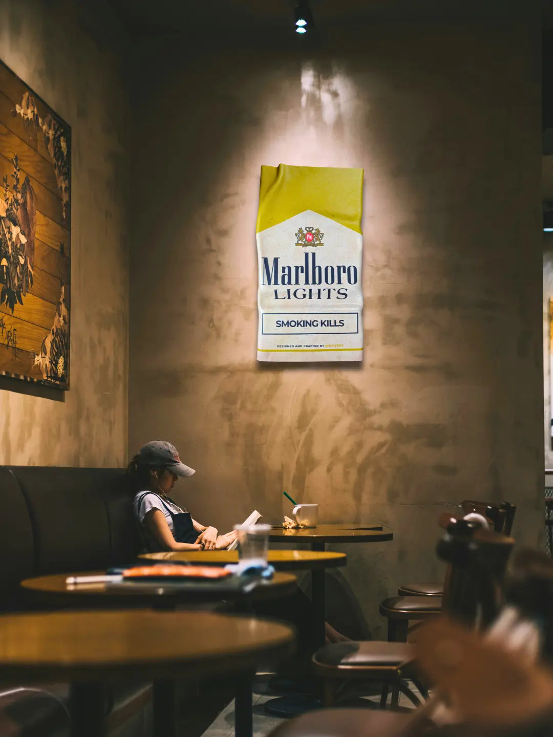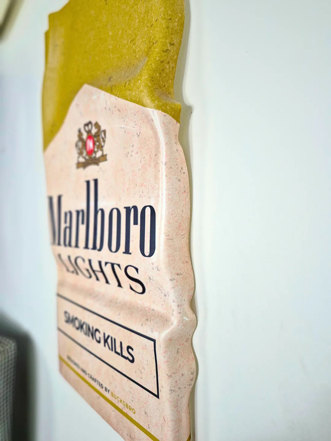 The Smooth Bro Pack takes the well-known Marlboro Lights brand and puts a new deformed spin on it. This sleek and laid-back art piece, perfect for the cool cat, combines modern flair with something really classic about a cigarette box. If you are looking for the ultimate piece of decor for someone who really likes to stay smooth and chill, there is no way you can miss with this piece. It might not have an illusive vibe in person, but it is a great way to put a smooth, effortlessly cool feel in whatever space you need it for. If you want the classic look or just want to vibe out with a unique twist, this deformed print will have your walls smoking with style… without the smoke!
